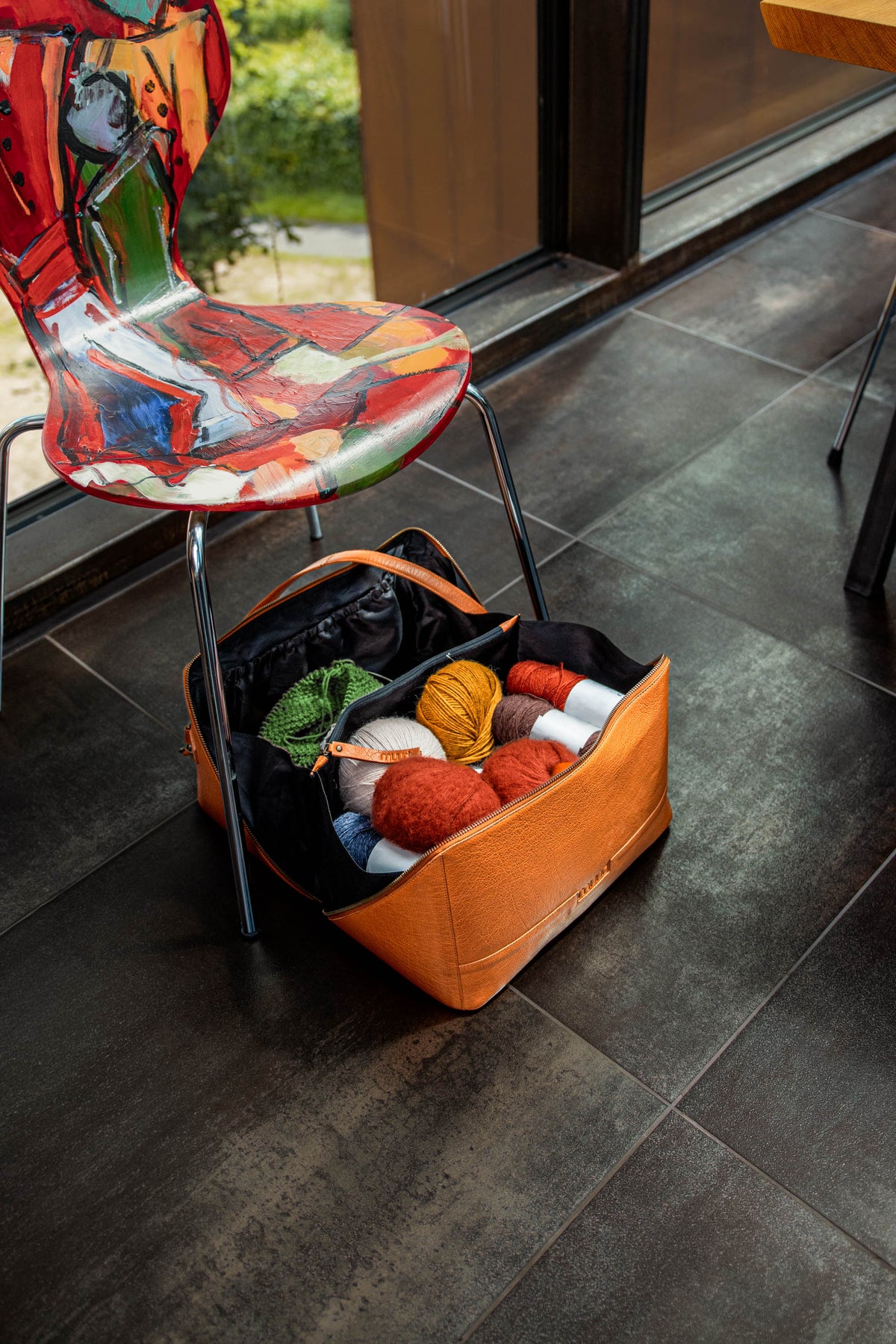 Cleo XL projekttasken giver dig ekstra plads uden at gå på kompromis med stil eller funktionalitet. Tasken er fremstillet af kvalitetslæder, designet til at holde i mange år og til at imponere. Uanset om du har brug for at bære strikkeværktøj eller dine daglige essentials, giver denne taske dig den plads, du har brug for – med raffineret elegance.