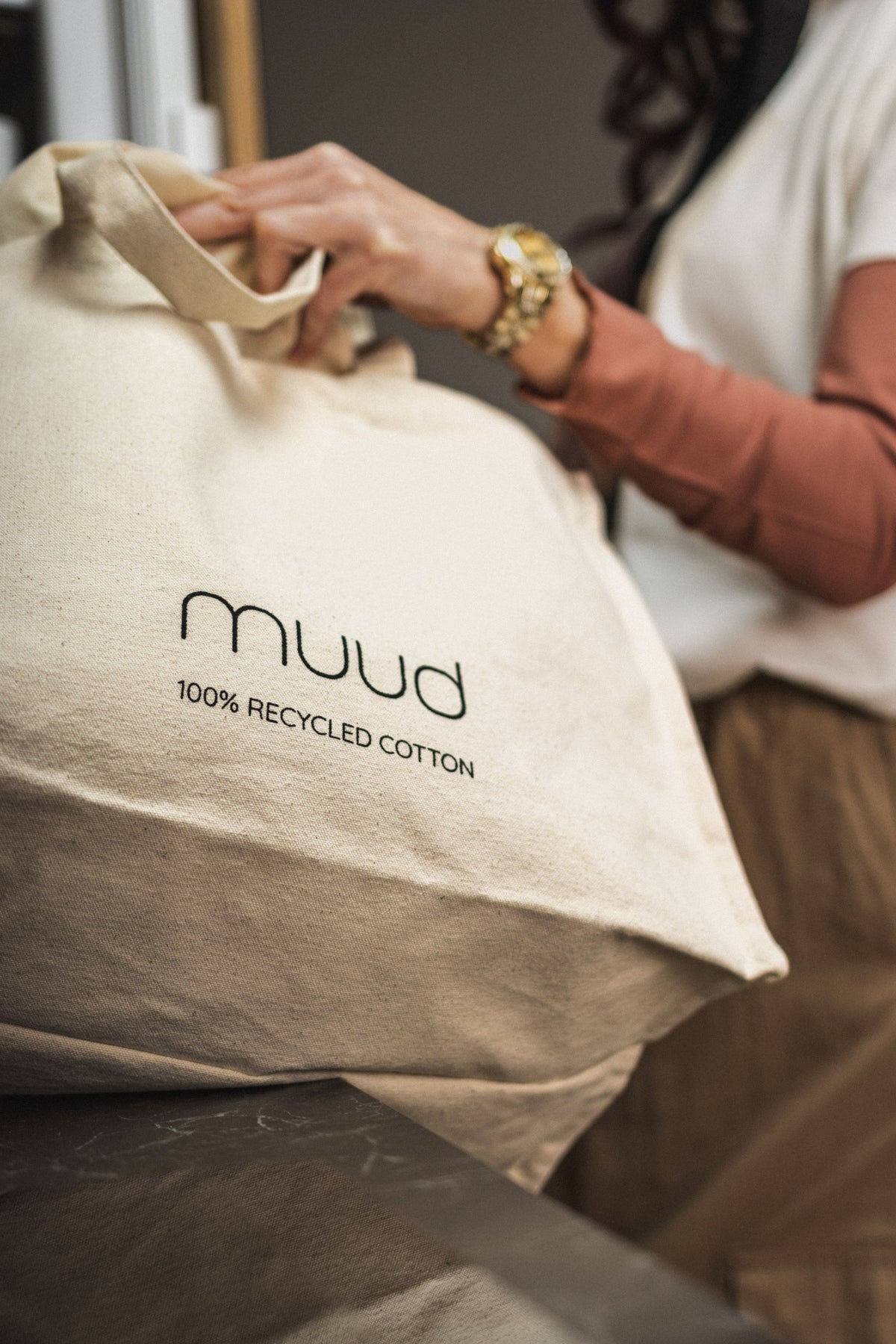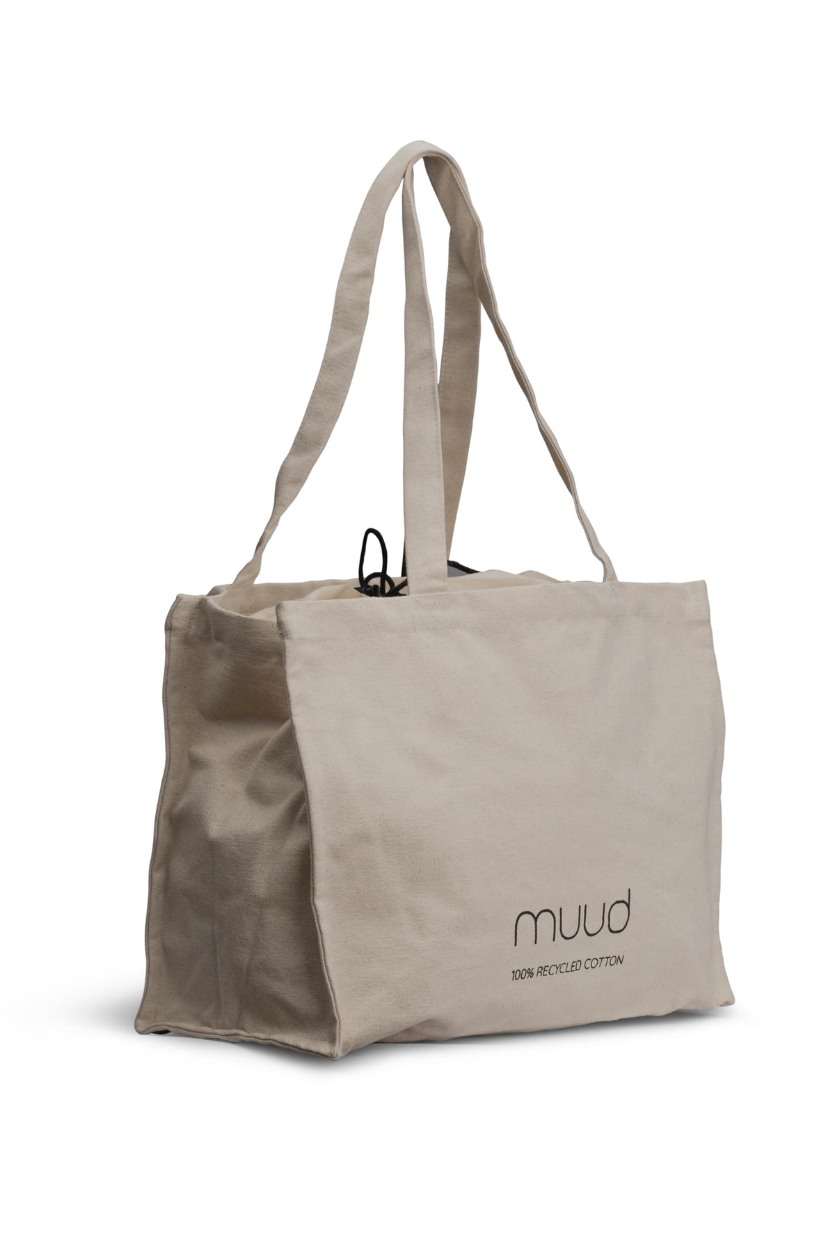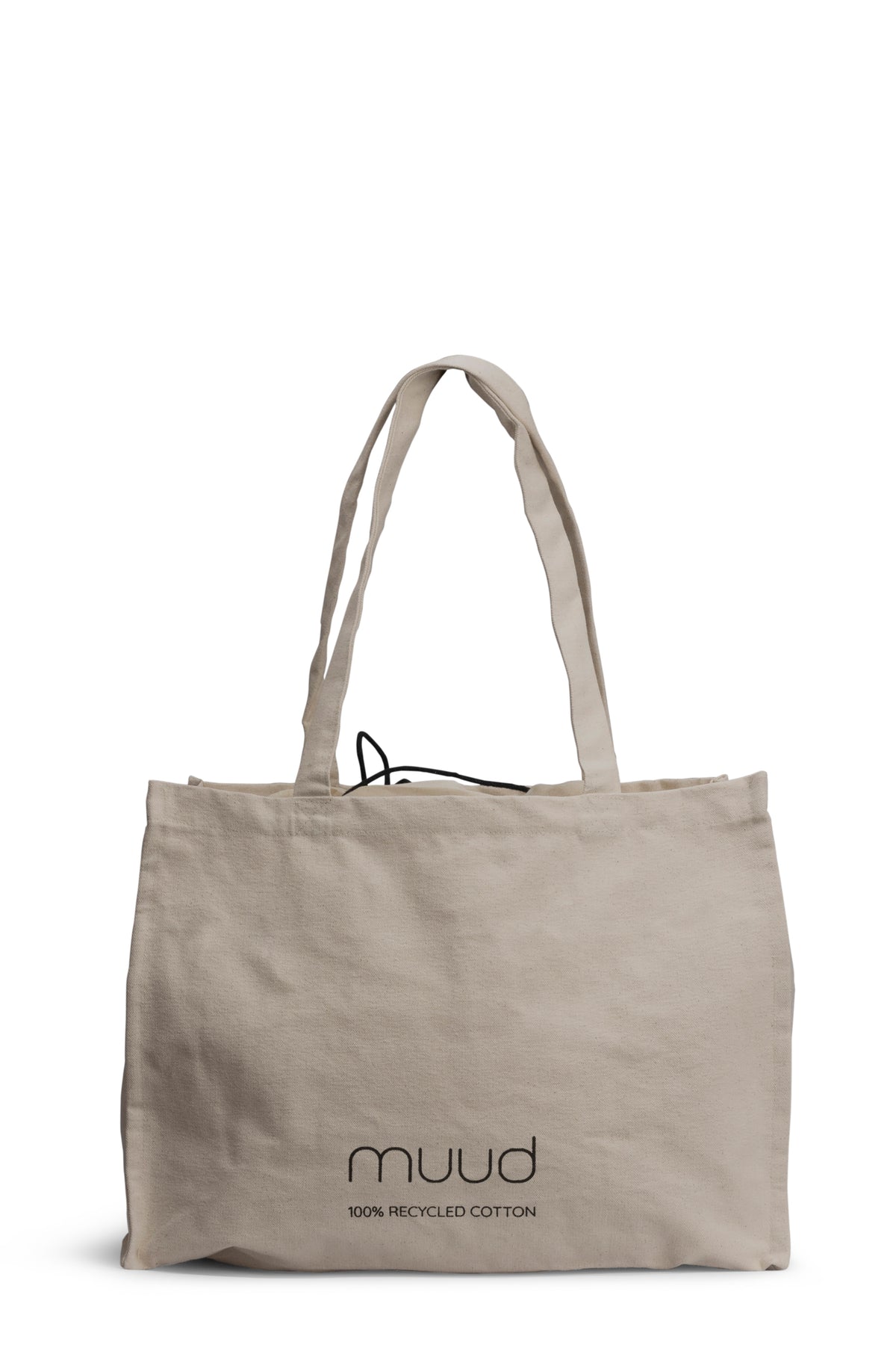 Der muud Recycling-Shopper ist keine gewöhnliche Tragetasche. Es handelt sich um eine wunderschöne und vielseitige Tasche aus 100% recycelter Baumwolle. Die Handtasche ist strapazierfähig und kann immer wieder verwendet werden – sie bietet eine stilvolle Alternative zu Einweg-Plastiktüten.